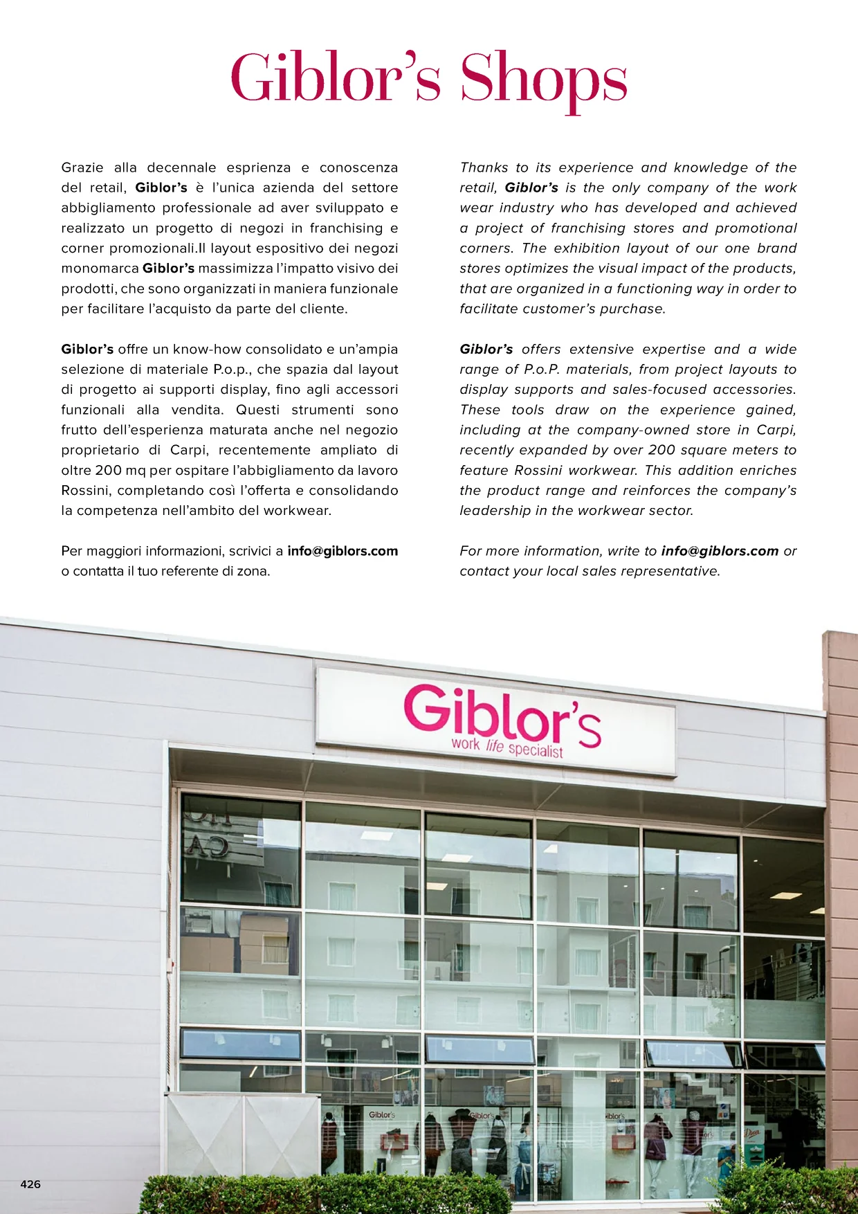 monomarca Giblor’s massimizza l’impatto visivo dei stores optimizes the visual impact of the products,