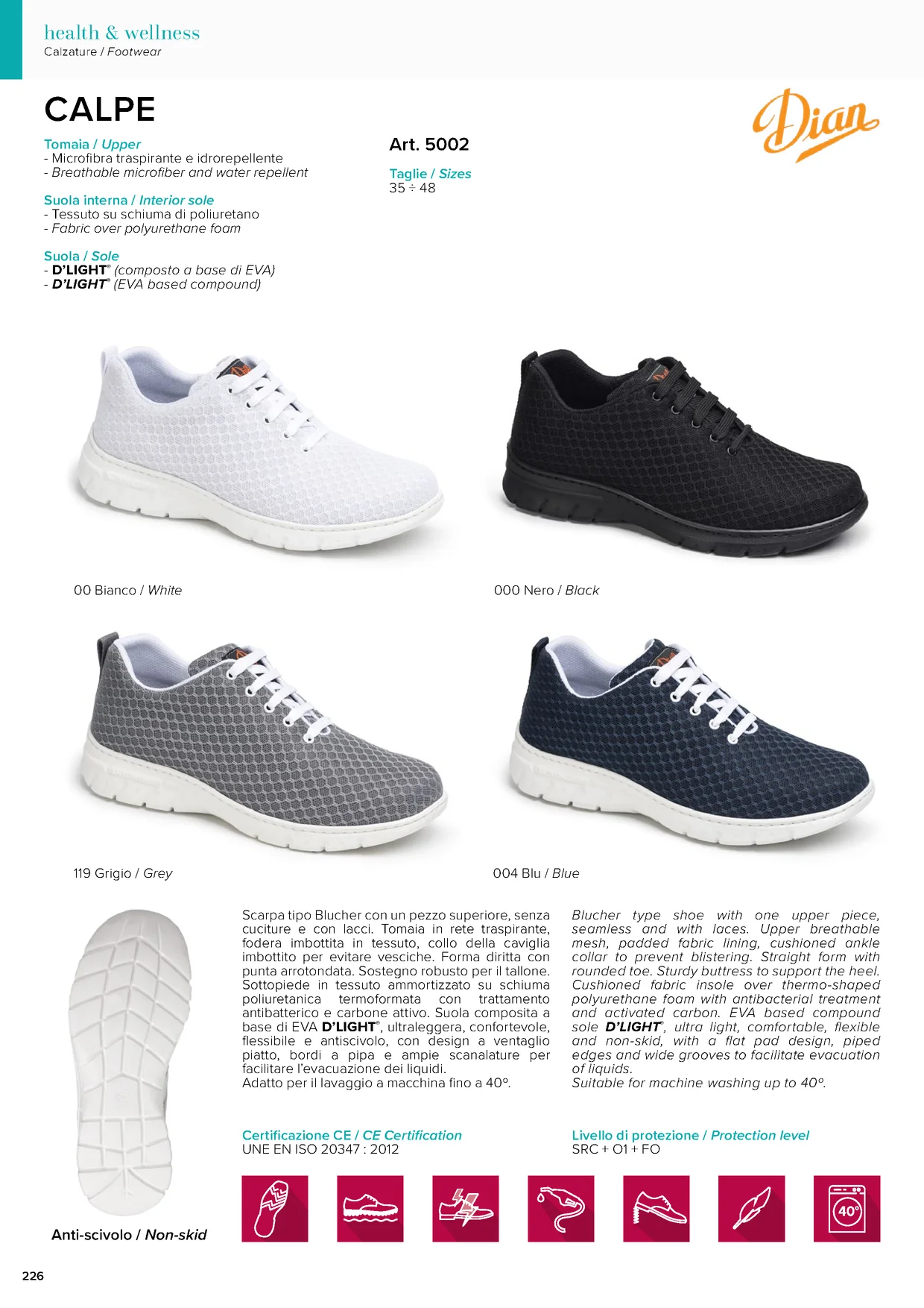 cuciture e con lacci. Tomaia in rete traspirante, seamless and with laces. Upper breathable