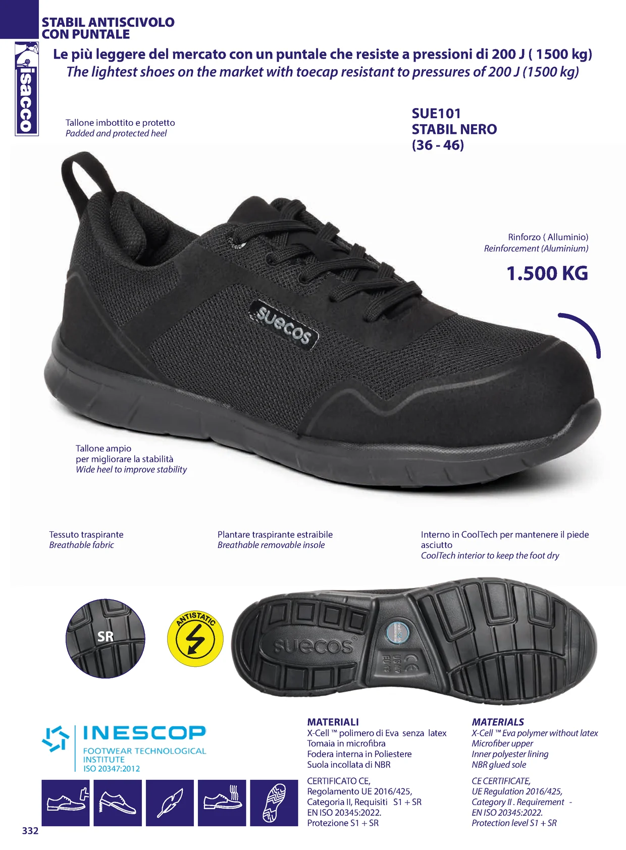 The lightest shoes on the market with toecap resistant to pressures of 200 J (1500 kg)