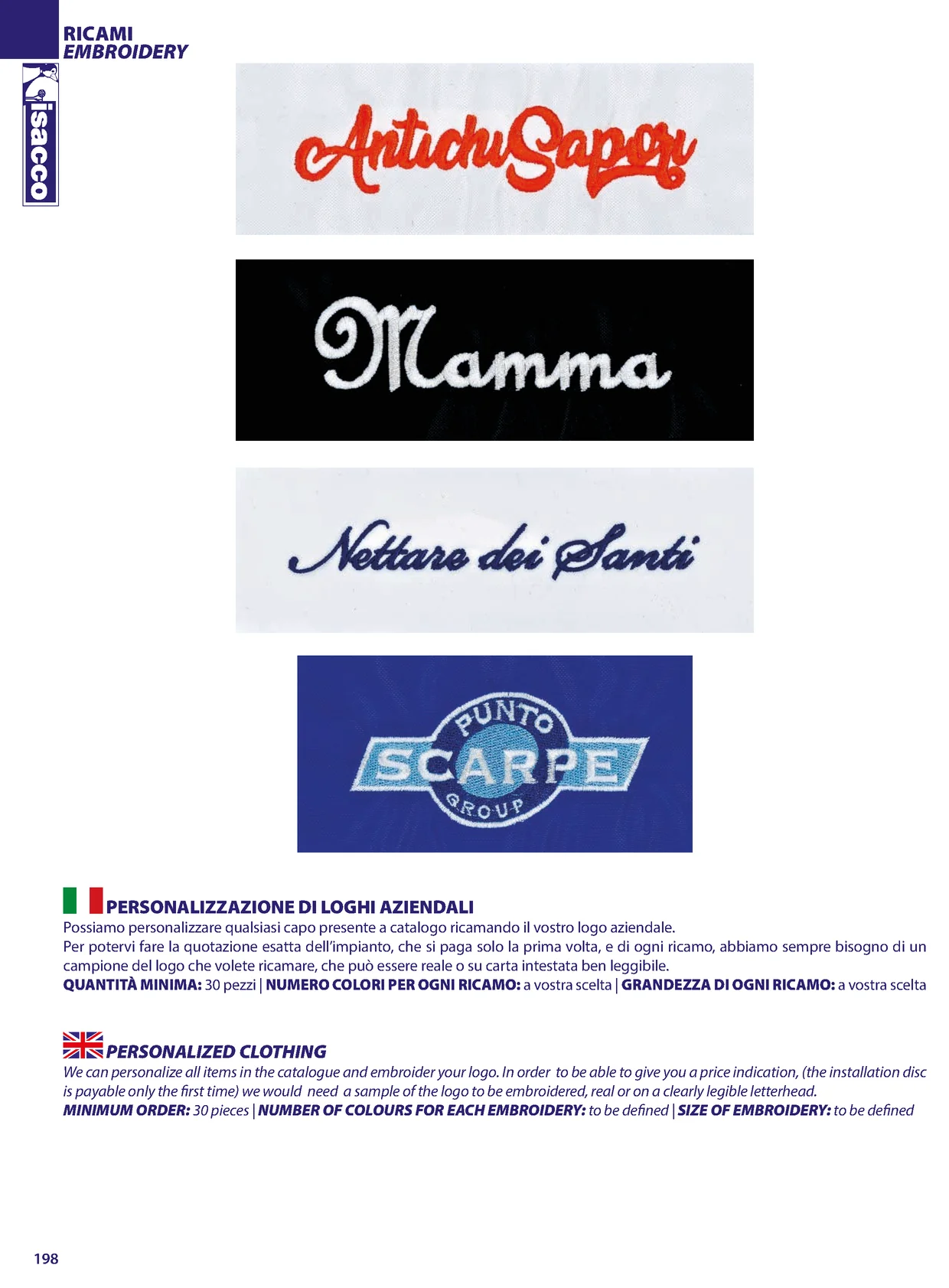 QUANTITÀ MINIMA: 30 pezzi | NUMERO COLORI PER OGNI RICAMO: a vostra scelta | GRANDEZZA DI OGNI RICAMO: a vostra scelta