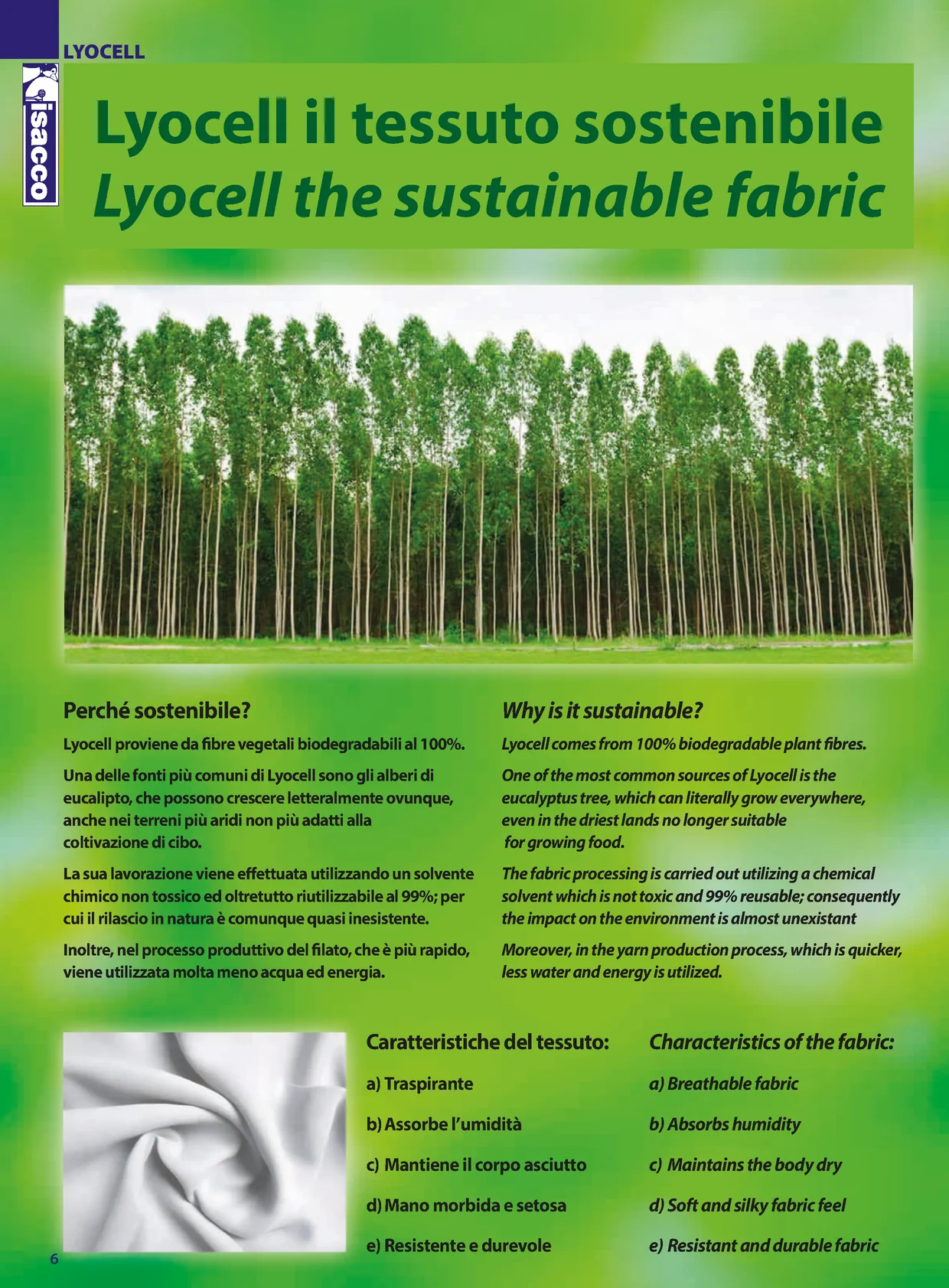 Lyocell proviene da fibre vegetali biodegradabili al 100%. Lyocell comes from 100% biodegradable plant fibres.