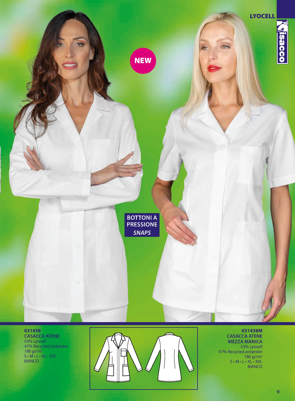 LYOCELL NEW BOTTONI A PRESSIONE SNAPS 031438 031438M CASACCA ATENE CASACCA ATENE 53% Lyocell MEZZA MANICA 47% Recycled polyester 53% Lyocell 180 gr/m2 47% Recycled polyester S • M • L • XL • XXL 180 gr/m2 BIANCO S • M • L • XL • XXL BIANCO 9