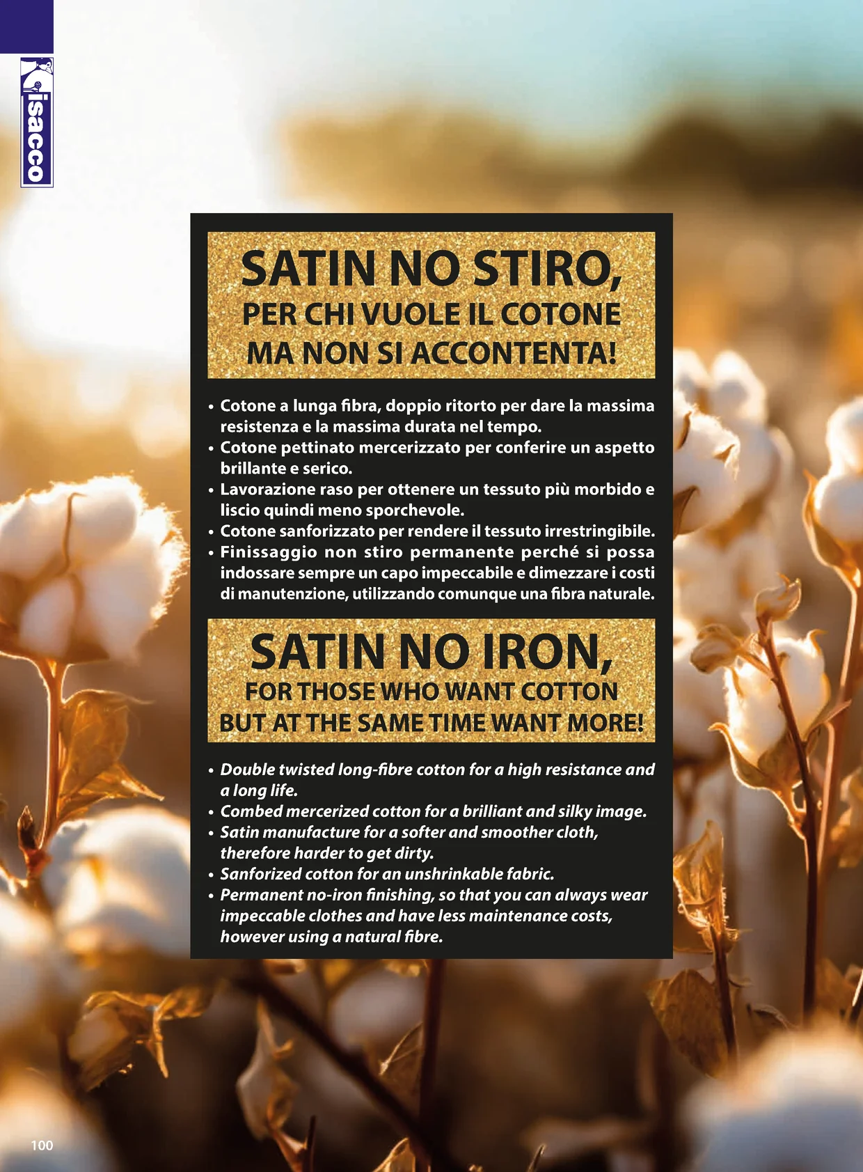 • Lavorazione raso per ottenere un tessuto più morbido e