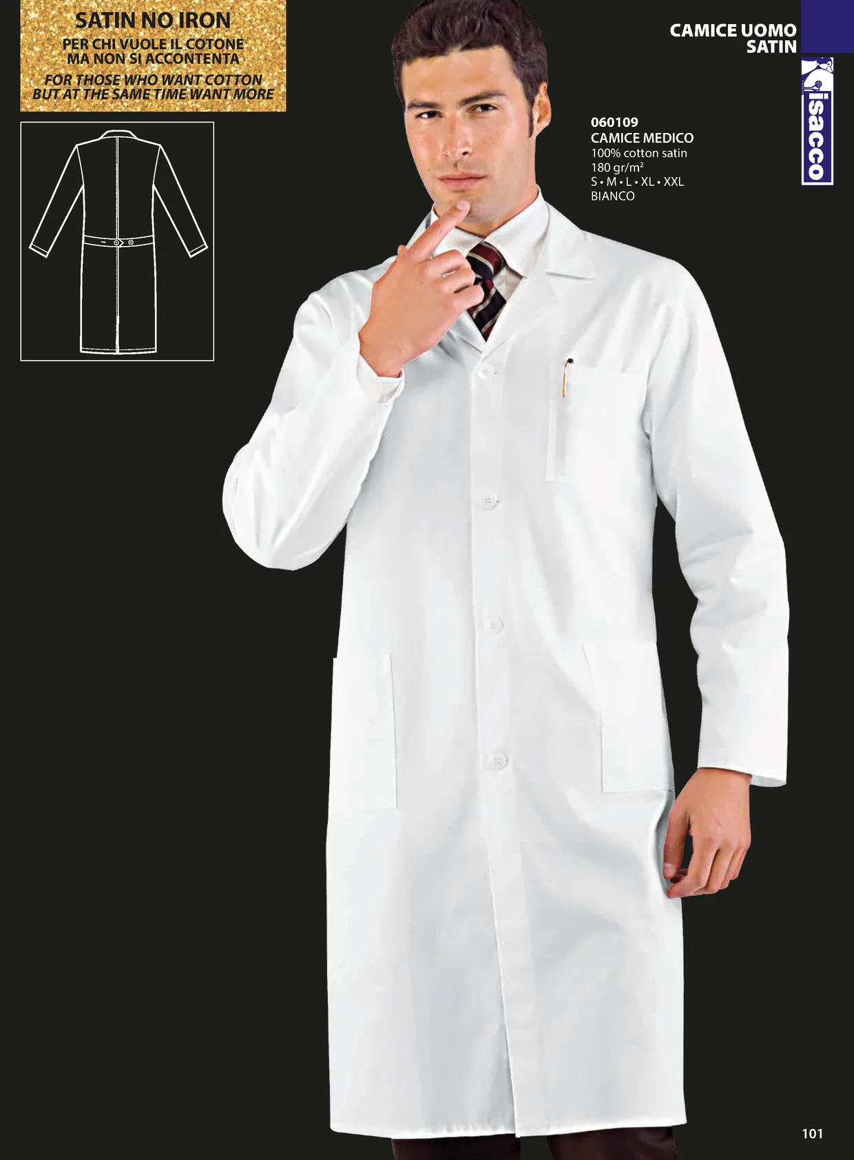 SATIN NO IRON CAMICE UOMO PER CHI VUOLE IL COTONE SATIN MA NON SI ACCONTENTA FOR THOSE WHO WANT COTTON BUT AT THE SAME TIME WANT MORE 060109 CAMICE MEDICO 100% cotton satin 180 gr/m2 S • M • L • XL • XXL BIANCO 101