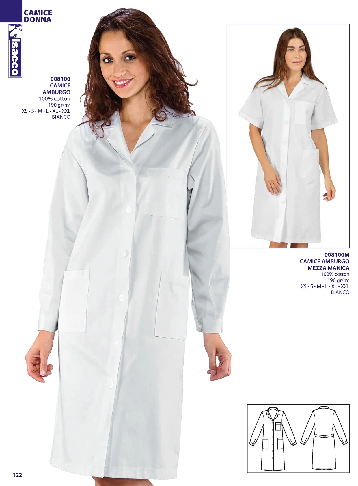 CAMICE DONNA 008100 CAMICE AMBURGO 100% cotton 190 gr/m2 XS • S • M • L • XL • XXL BIANCO 008100M CAMICE AMBURGO MEZZA MANICA 100% cotton 190 gr/m2 XS • S • M • L • XL • XXL BIANCO 122