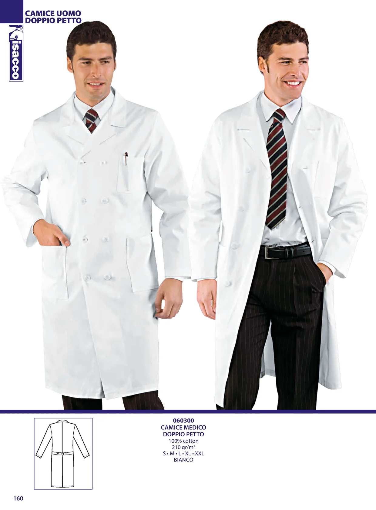 CAMICE UOMO DOPPIO PETTO 060300 CAMICE MEDICO DOPPIO PETTO 100% cotton 210 gr/m2 S • M • L • XL • XXL BIANCO 160