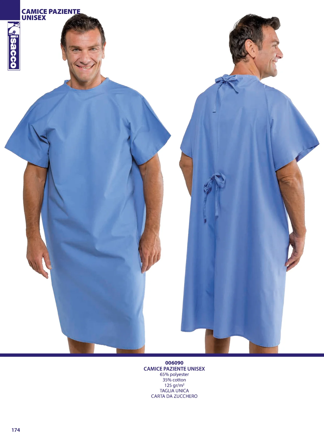 CAMICE PAZIENTE UNISEX 006090 CAMICE PAZIENTE UNISEX 65% polyester 35% cotton 125 gr/m2 TAGLIA UNICA CARTA DA ZUCCHERO 174