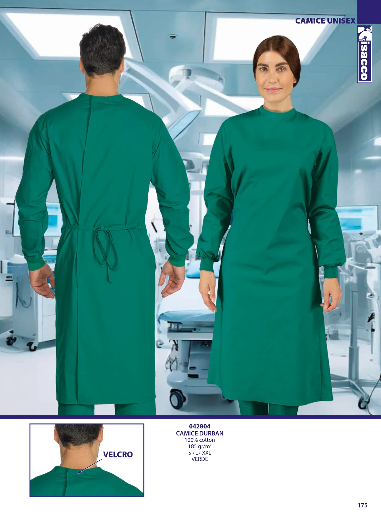 CAMICE UNISEX 042804 CAMICE DURBAN 100% cotton 185 gr/m2 VELCRO S • L • XXL VERDE 175
