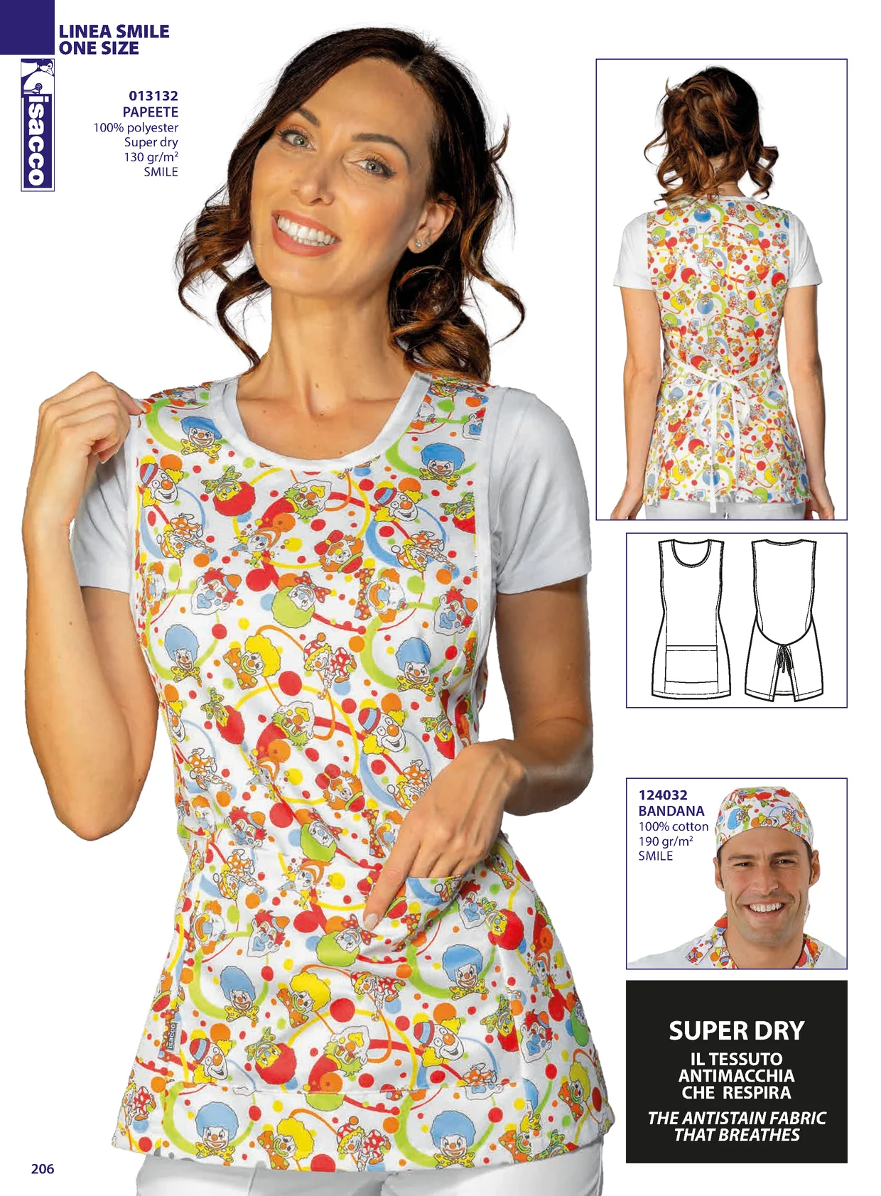 LINEA SMILE ONE SIZE 013132 PAPEETE 100% polyester Super dry 130 gr/m2 SMILE 124032 BANDANA 100% cotton 190 gr/m2 SMILE SUPER DRY IL TESSUTO ANTIMACCHIA CHE RESPIRA THE ANTISTAIN FABRIC THAT BREATHES 206