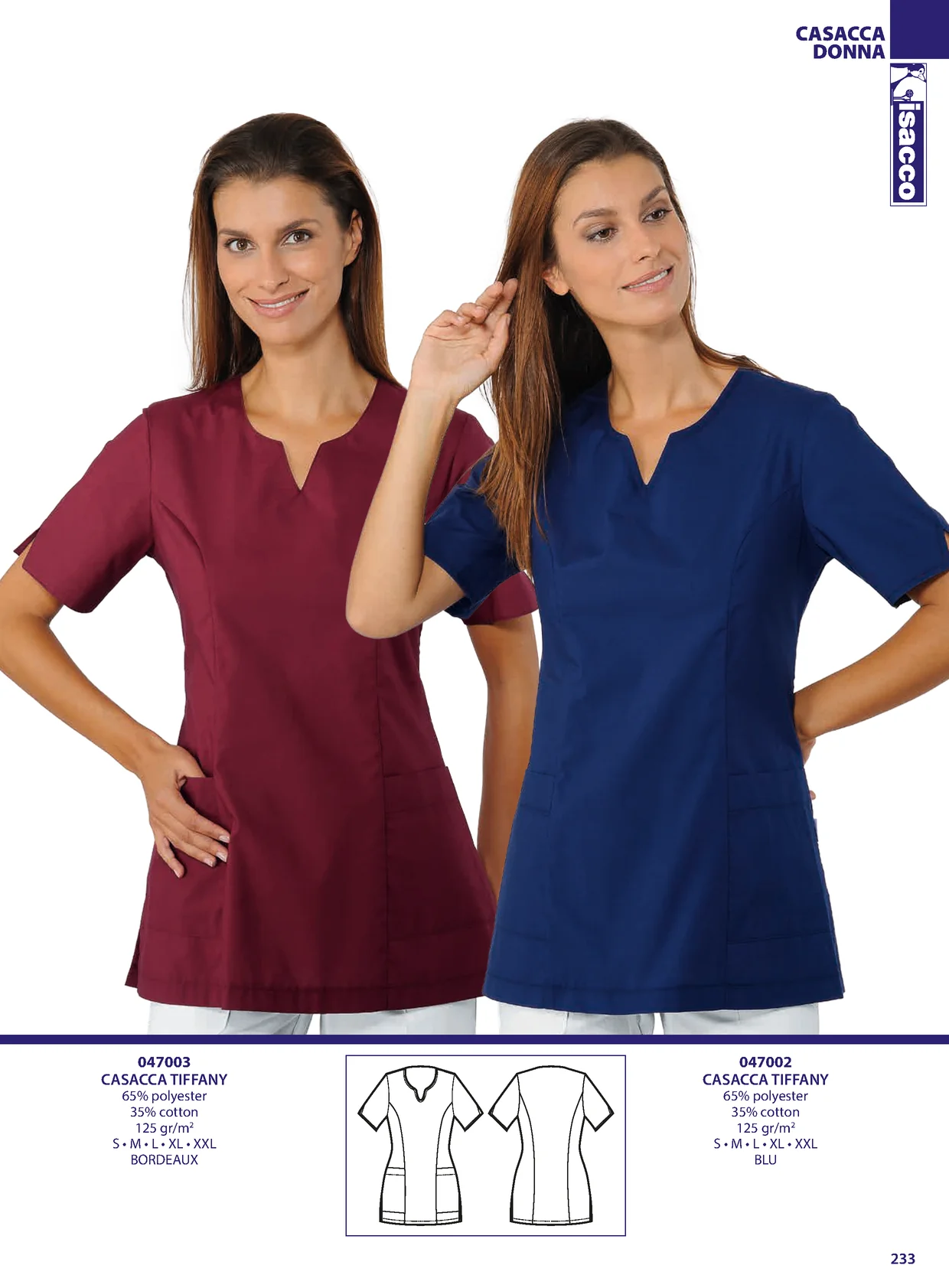 CASACCA DONNA 047003 047002 CASACCA TIFFANY CASACCA TIFFANY 65% polyester 65% polyester 35% cotton 35% cotton 125 gr/m2 125 gr/m2 S • M • L • XL • XXL S • M • L • XL • XXL BORDEAUX BLU 233