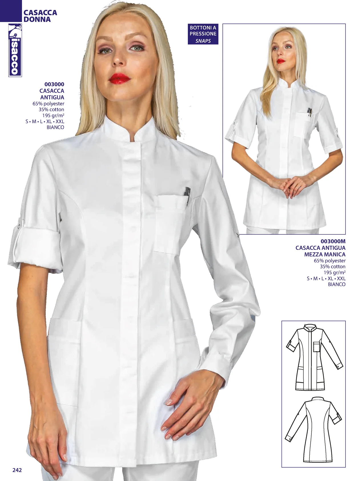 CASACCA DONNA BOTTONI A PRESSIONE SNAPS 003000 CASACCA ANTIGUA 65% polyester 35% cotton 195 gr/m2 S • M • L • XL • XXL BIANCO 003000M CASACCA ANTIGUA MEZZA MANICA 65% polyester 35% cotton 195 gr/m2 S • M • L • XL • XXL BIANCO 242