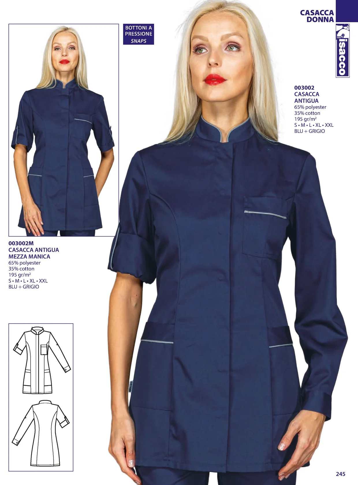 CASACCA DONNA BOTTONI A PRESSIONE SNAPS 003002 CASACCA ANTIGUA 65% polyester 35% cotton 195 gr/m2 S • M • L • XL • XXL BLU + GRIGIO 003002M CASACCA ANTIGUA MEZZA MANICA 65% polyester 35% cotton 195 gr/m2 S • M • L • XL • XXL BLU + GRIGIO 245