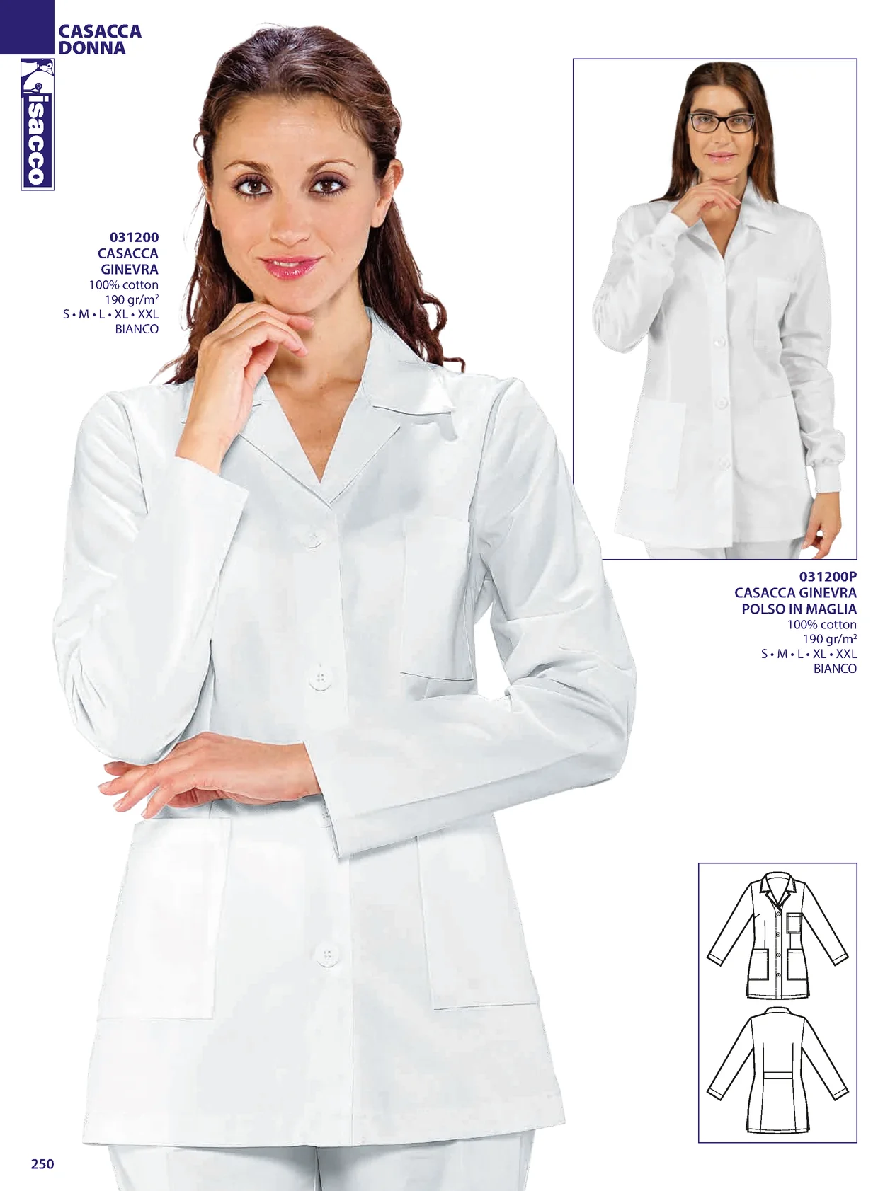 CASACCA DONNA 031200 CASACCA GINEVRA 100% cotton 190 gr/m2 S • M • L • XL • XXL BIANCO 031200P CASACCA GINEVRA POLSO IN MAGLIA 100% cotton 190 gr/m2 S • M • L • XL • XXL BIANCO 250