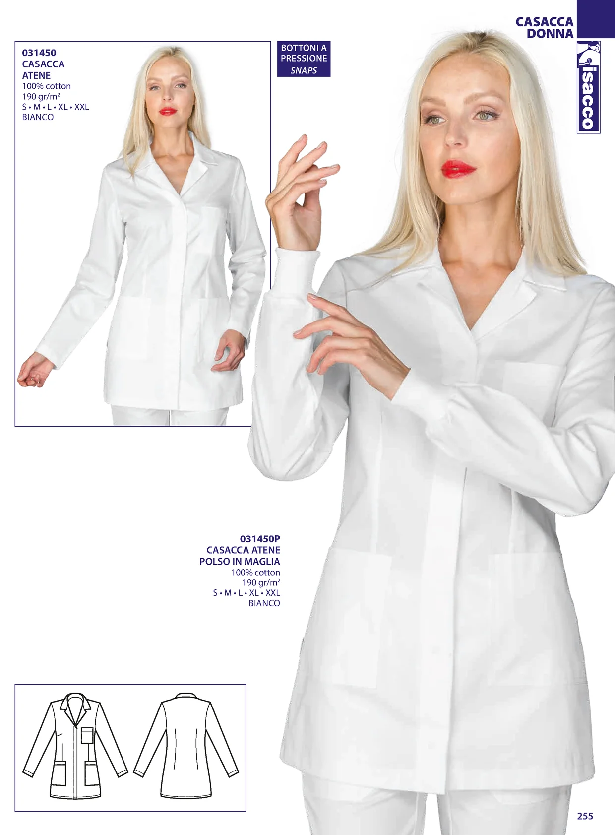 CASACCA DONNA BOTTONI A 031450 PRESSIONE CASACCA SNAPS ATENE 100% cotton 190 gr/m2 S • M • L • XL • XXL BIANCO 031450P CASACCA ATENE POLSO IN MAGLIA 100% cotton 190 gr/m2 S • M • L • XL • XXL BIANCO 255