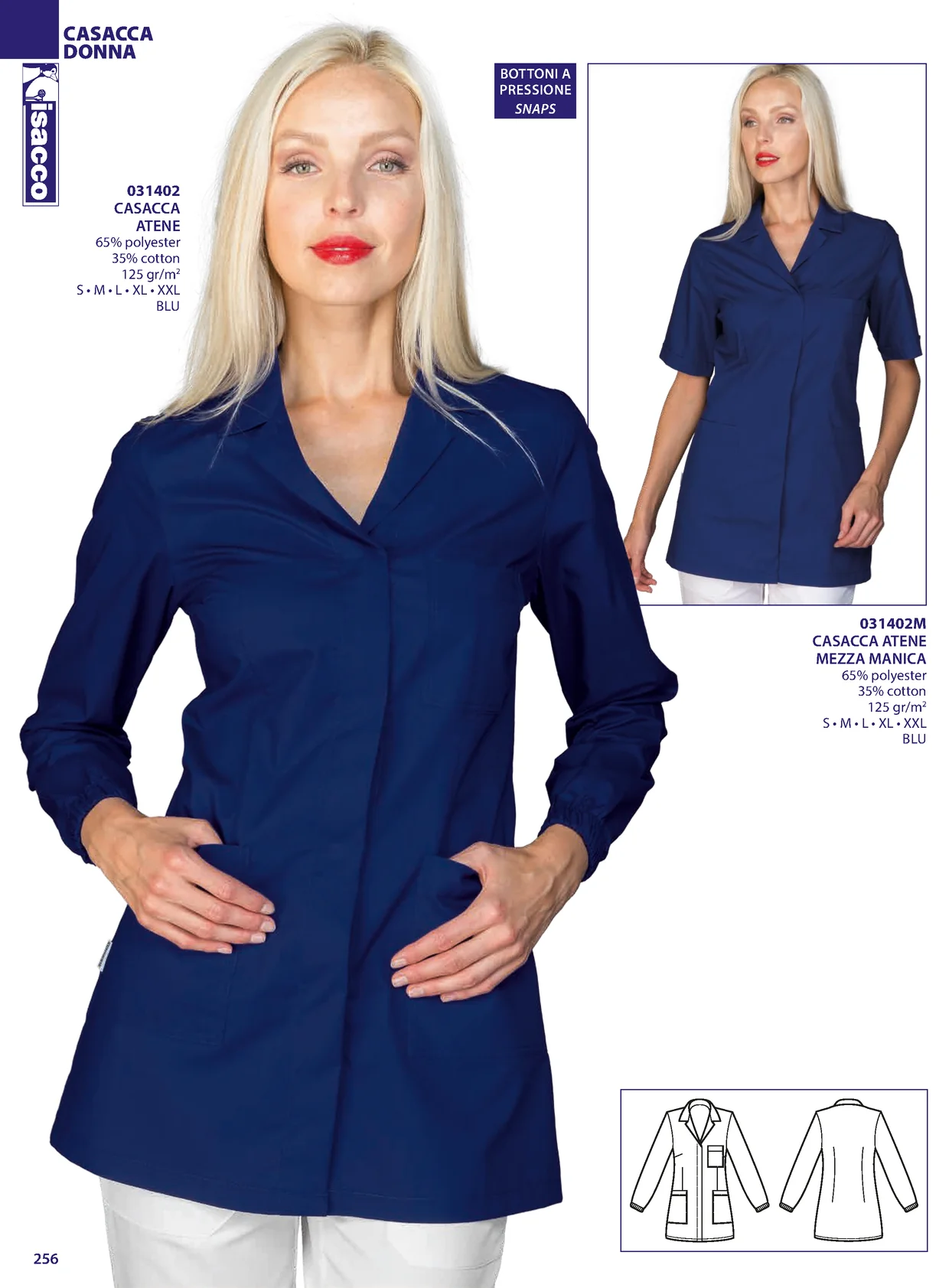 CASACCA DONNA BOTTONI A PRESSIONE SNAPS 031402 CASACCA ATENE 65% polyester 35% cotton 125 gr/m2 S • M • L • XL • XXL BLU 031402M CASACCA ATENE MEZZA MANICA 65% polyester 35% cotton 125 gr/m2 S • M • L • XL • XXL BLU 256