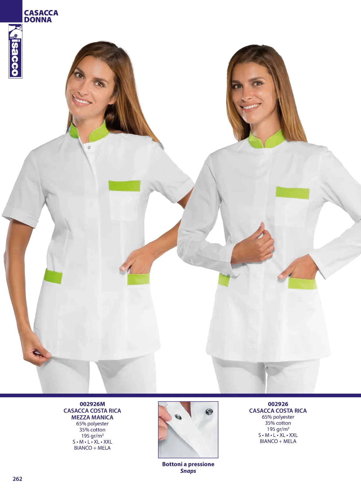CASACCA DONNA 002926M 002926 CASACCA COSTA RICA CASACCA COSTA RICA MEZZA MANICA 65% polyester 65% polyester 35% cotton 35% cotton 195 gr/m2 195 gr/m2 S • M • L • XL • XXL S • M • L • XL • XXL BIANCO + MELA BIANCO + MELA Bottoni a pressione Snaps 262