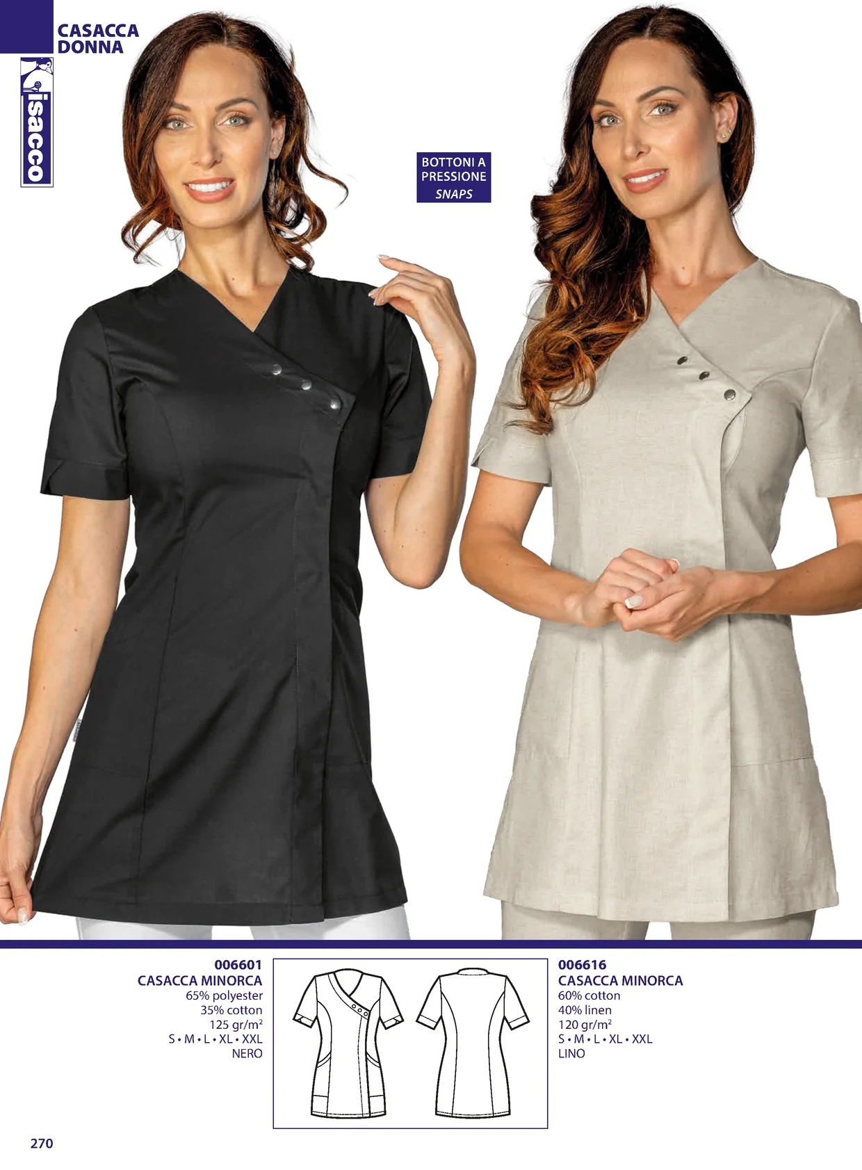 CASACCA DONNA BOTTONI A PRESSIONE SNAPS 006601 006616 CASACCA MINORCA CASACCA MINORCA 65% polyester 60% cotton 35% cotton 40% linen 125 gr/m2 120 gr/m2 S • M • L • XL • XXL S • M • L • XL • XXL NERO LINO 270