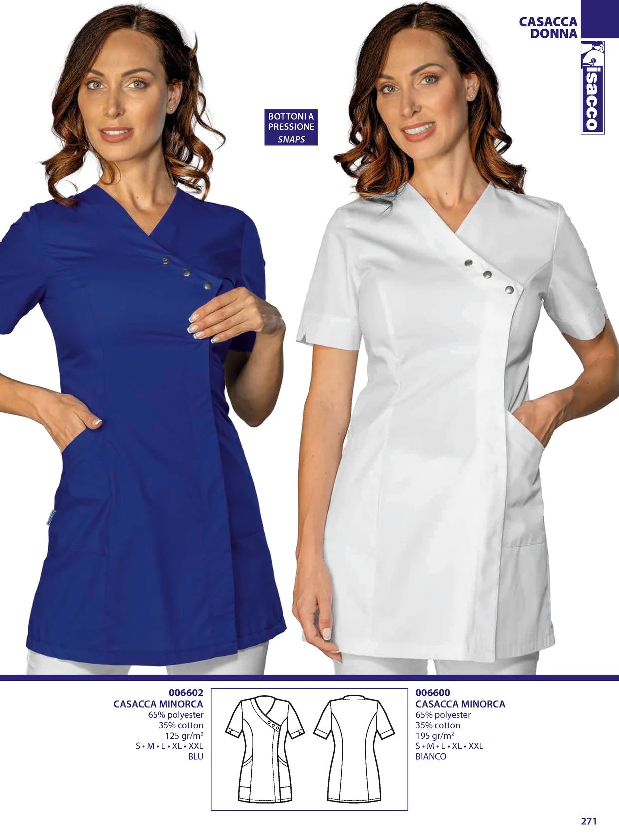 CASACCA DONNA BOTTONI A PRESSIONE SNAPS 006602 006600 CASACCA MINORCA CASACCA MINORCA 65% polyester 65% polyester 35% cotton 35% cotton 125 gr/m2 195 gr/m2 S • M • L • XL • XXL S • M • L • XL • XXL BLU BIANCO 271