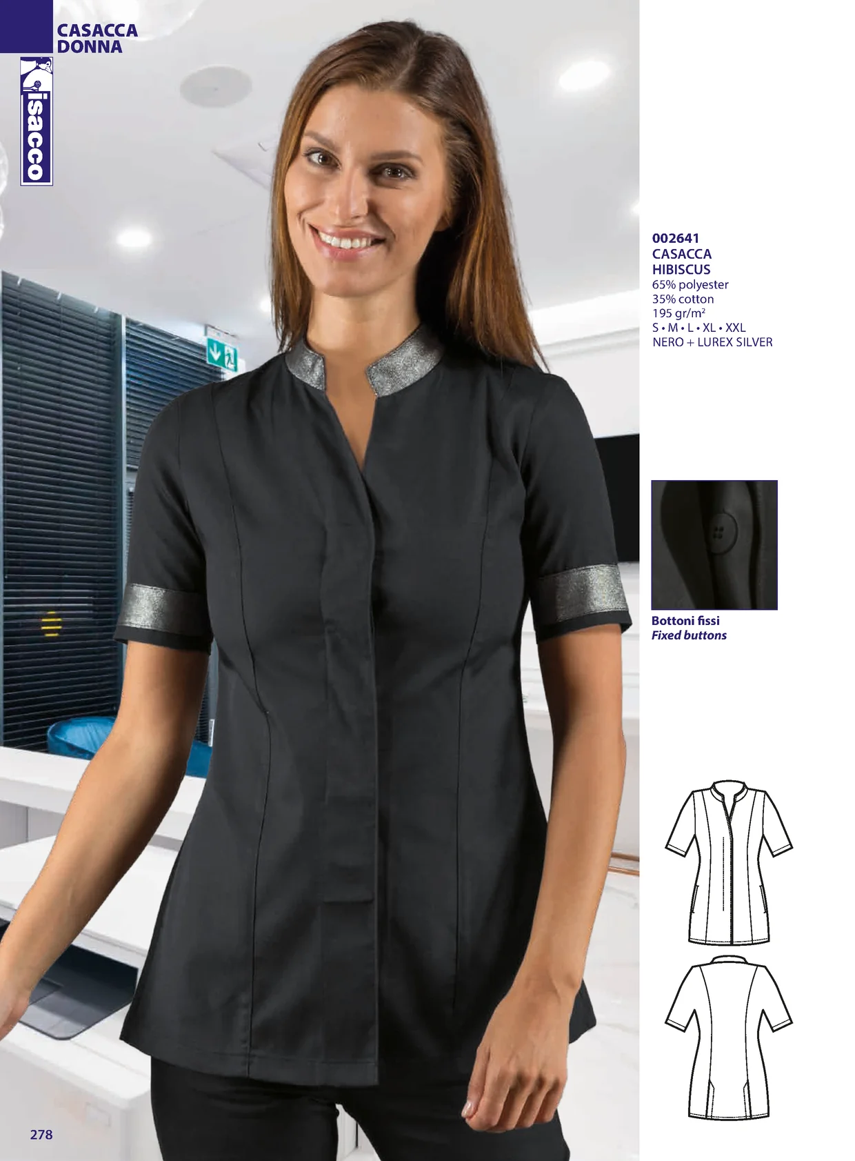 CASACCA DONNA 002641 CASACCA HIBISCUS 65% polyester 35% cotton 195 gr/m2 S • M • L • XL • XXL NERO + LUREX SILVER Bottoni fissi Fixed buttons 278