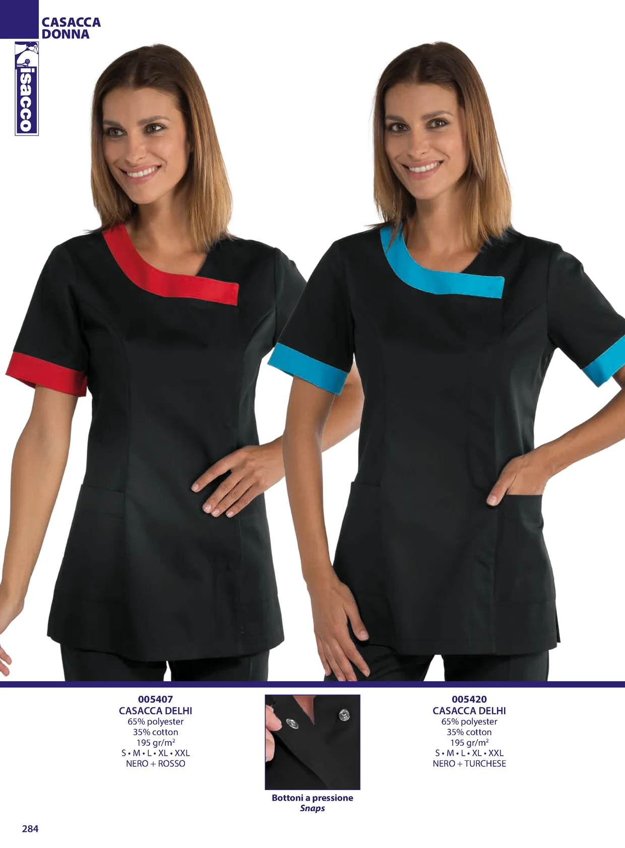 CASACCA DONNA 005407 005420 CASACCA DELHI CASACCA DELHI 65% polyester 65% polyester 35% cotton 35% cotton 195 gr/m2 195 gr/m2 S • M • L • XL • XXL S • M • L • XL • XXL NERO + ROSSO NERO + TURCHESE Bottoni a pressione Snaps 284