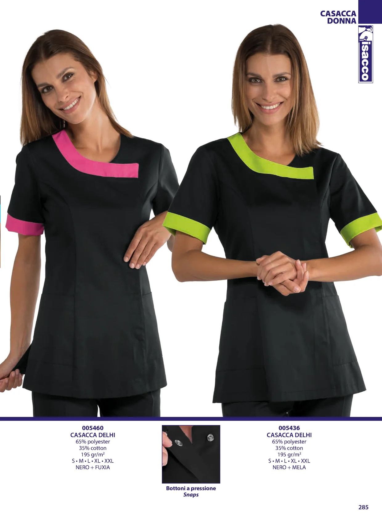 CASACCA DONNA 005460 005436 CASACCA DELHI CASACCA DELHI 65% polyester 65% polyester 35% cotton 35% cotton 195 gr/m2 195 gr/m2 S • M • L • XL • XXL S • M • L • XL • XXL NERO + FUXIA NERO + MELA Bottoni a pressione Snaps 285
