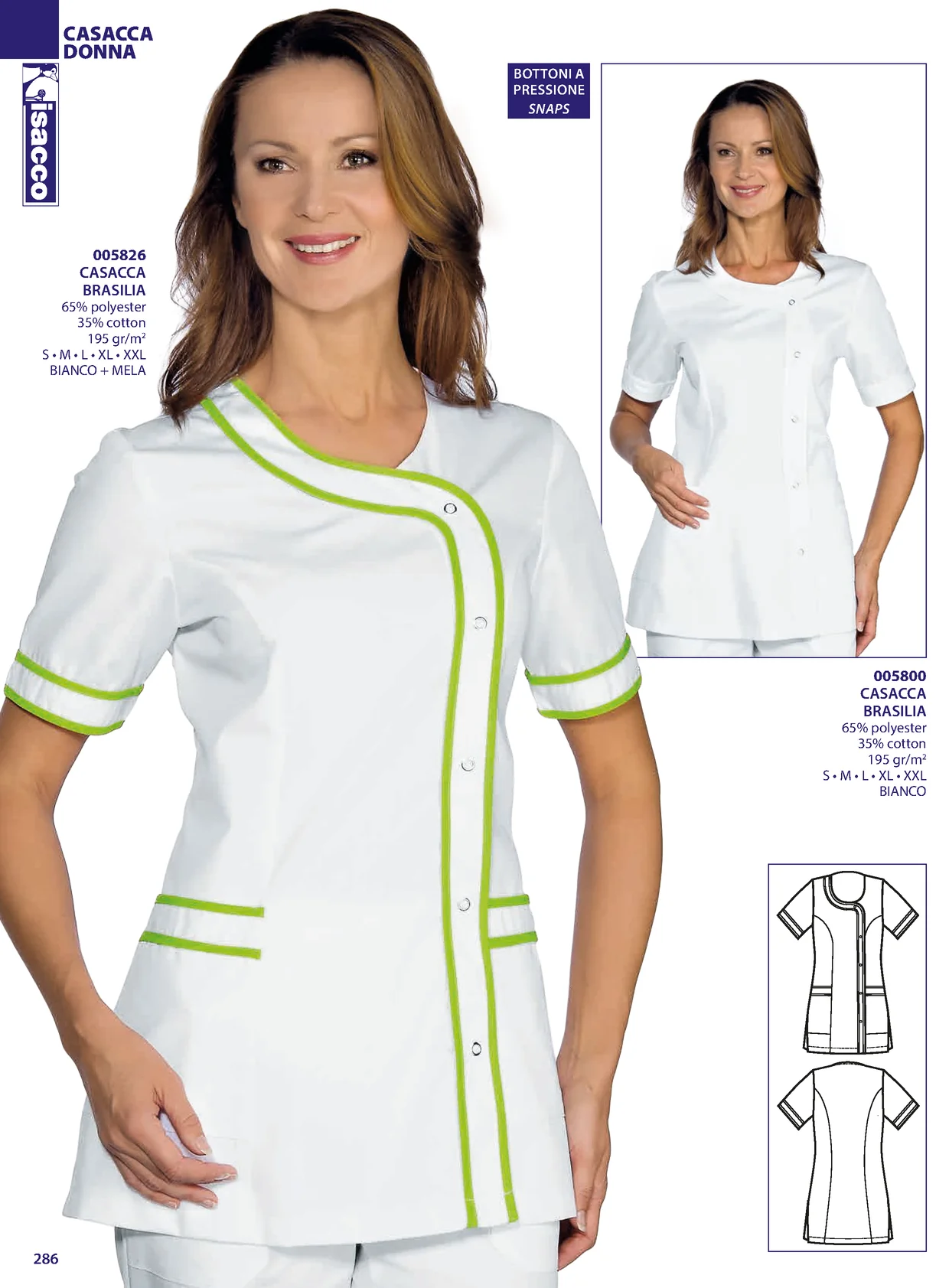 CASACCA DONNA BOTTONI A PRESSIONE SNAPS 005826 CASACCA BRASILIA 65% polyester 35% cotton 195 gr/m2 S • M • L • XL • XXL BIANCO + MELA 005800 CASACCA BRASILIA 65% polyester 35% cotton 195 gr/m2 S • M • L • XL • XXL BIANCO 286