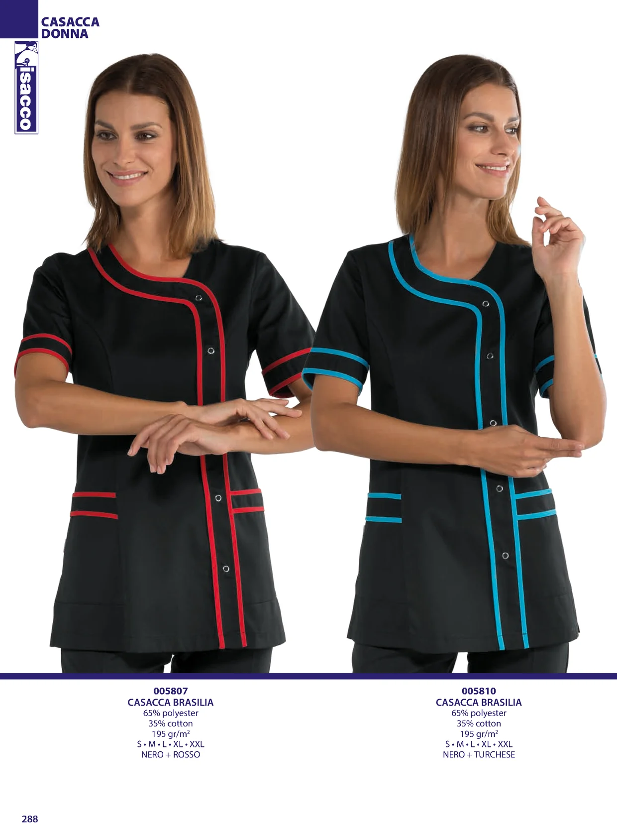 CASACCA DONNA 005807 005810 CASACCA BRASILIA CASACCA BRASILIA 65% polyester 65% polyester 35% cotton 35% cotton 195 gr/m2 195 gr/m2 S • M • L • XL • XXL S • M • L • XL • XXL NERO + ROSSO NERO + TURCHESE 288