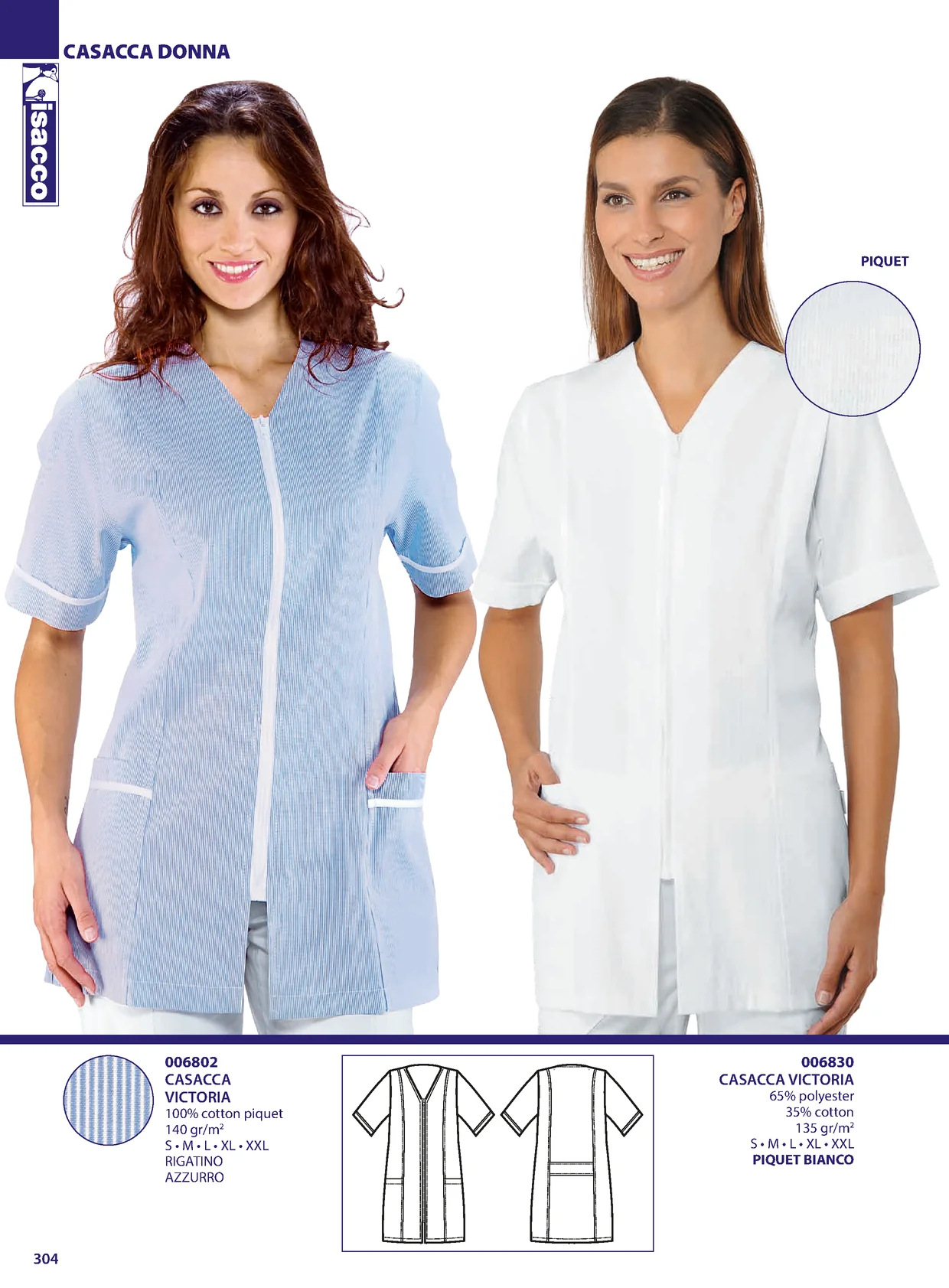 CASACCA DONNA PIQUET 006802 006830 CASACCA CASACCA VICTORIA VICTORIA 65% polyester 100% cotton piquet 35% cotton 140 gr/m2 135 gr/m2 S • M • L • XL • XXL S • M • L • XL • XXL RIGATINO PIQUET BIANCO AZZURRO 304