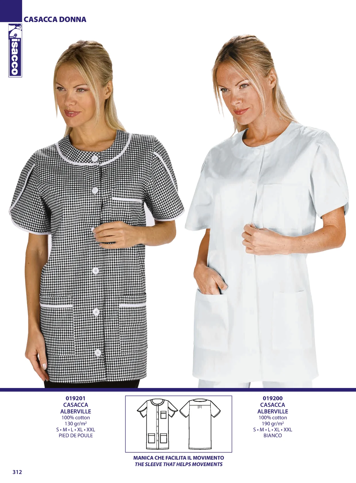 CASACCA DONNA 019201 019200 CASACCA CASACCA ALBERVILLE ALBERVILLE 100% cotton 100% cotton 130 gr/m2 190 gr/m2 S • M • L • XL • XXL S • M • L • XL • XXL PIED DE POULE BIANCO MANICA CHE FACILITA IL MOVIMENTO THE SLEEVE THAT HELPS MOVEMENTS 312