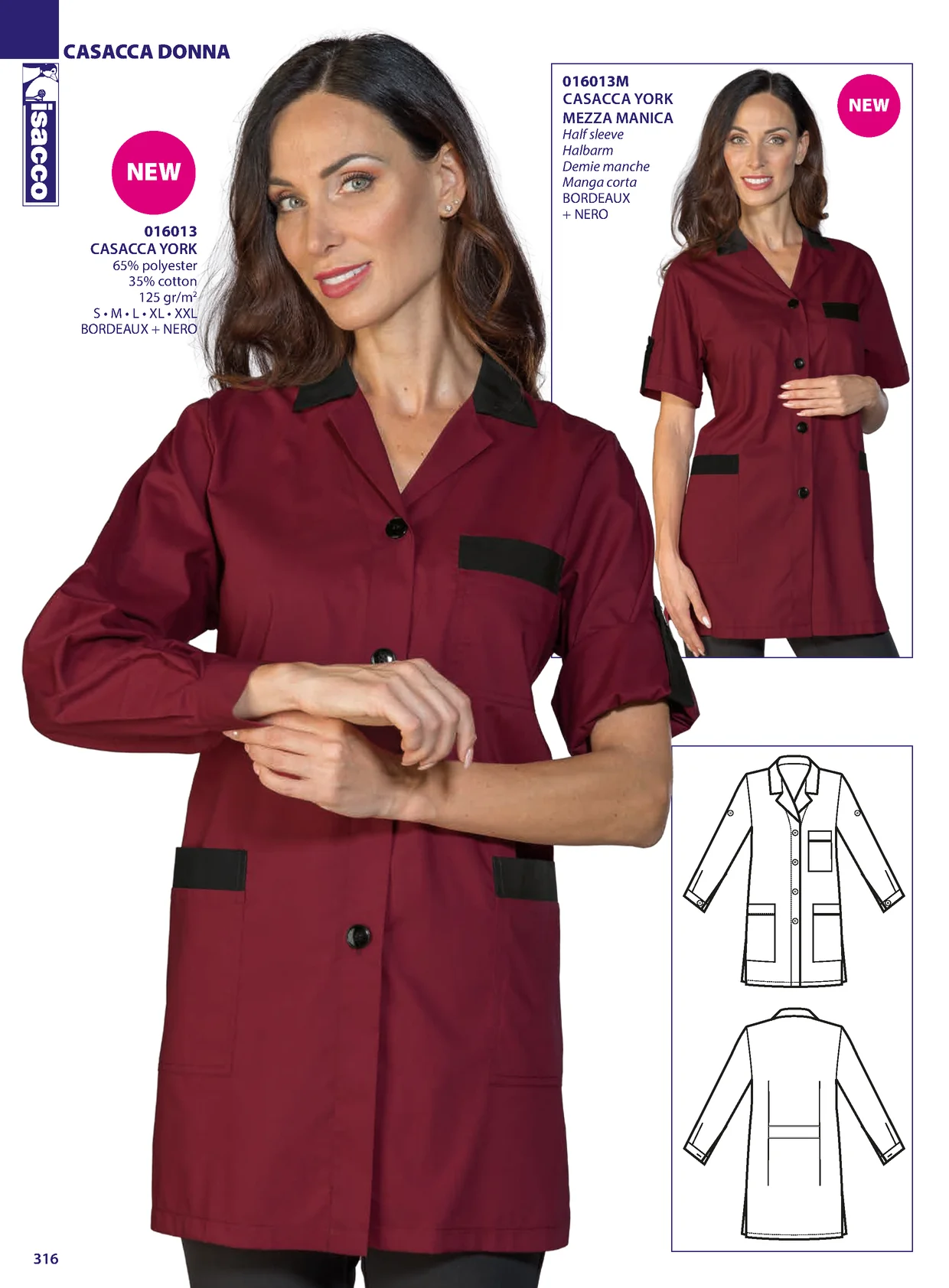 CASACCA DONNA 016013M CASACCA YORK NEW MEZZA MANICA Half sleeve Halbarm NEW Demie manche Manga corta BORDEAUX + NERO 016013 CASACCA YORK 65% polyester 35% cotton 125 gr/m2 S • M • L • XL • XXL BORDEAUX + NERO 316