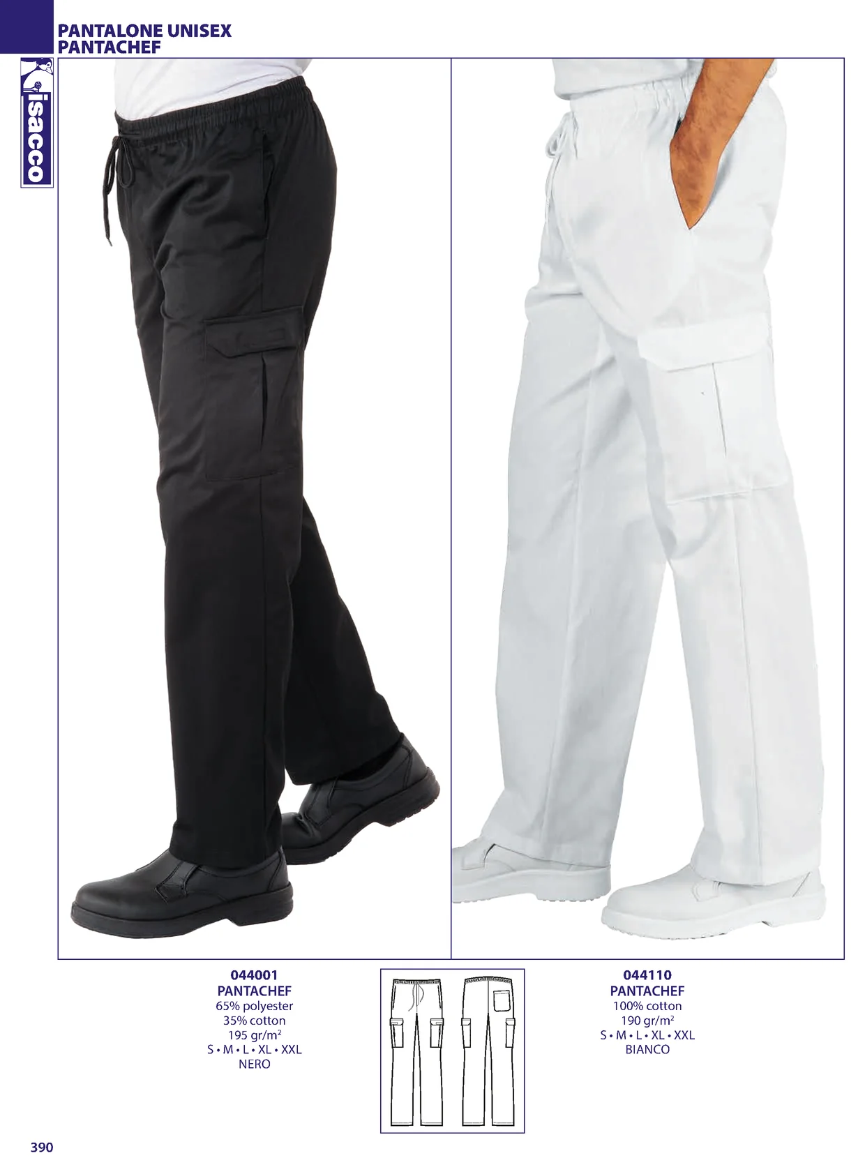 PANTALONE UNISEX PANTACHEF 044001 044110 PANTACHEF PANTACHEF 65% polyester 100% cotton 35% cotton 190 gr/m2 195 gr/m2 S • M • L • XL • XXL S • M • L • XL • XXL BIANCO NERO 390