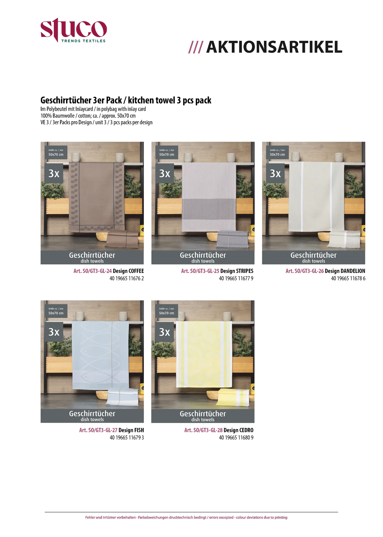 Art. SO/GT3-GL-24 Design COFFEE Art. SO/GT3-GL-25 Design STRIPES Art. SO/GT3-GL-26 Design DANDELION