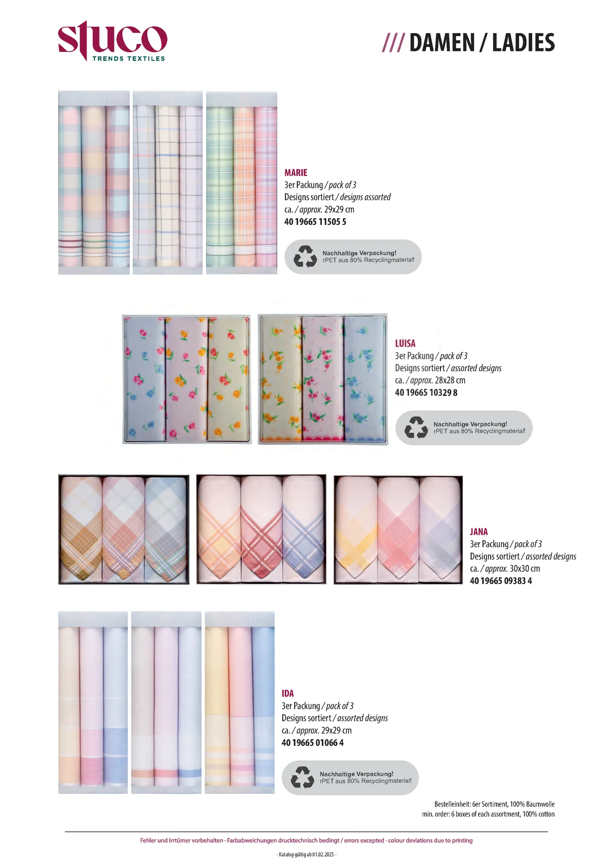 Bestelleinheit: 6er Sortiment, 100% Baumwolle