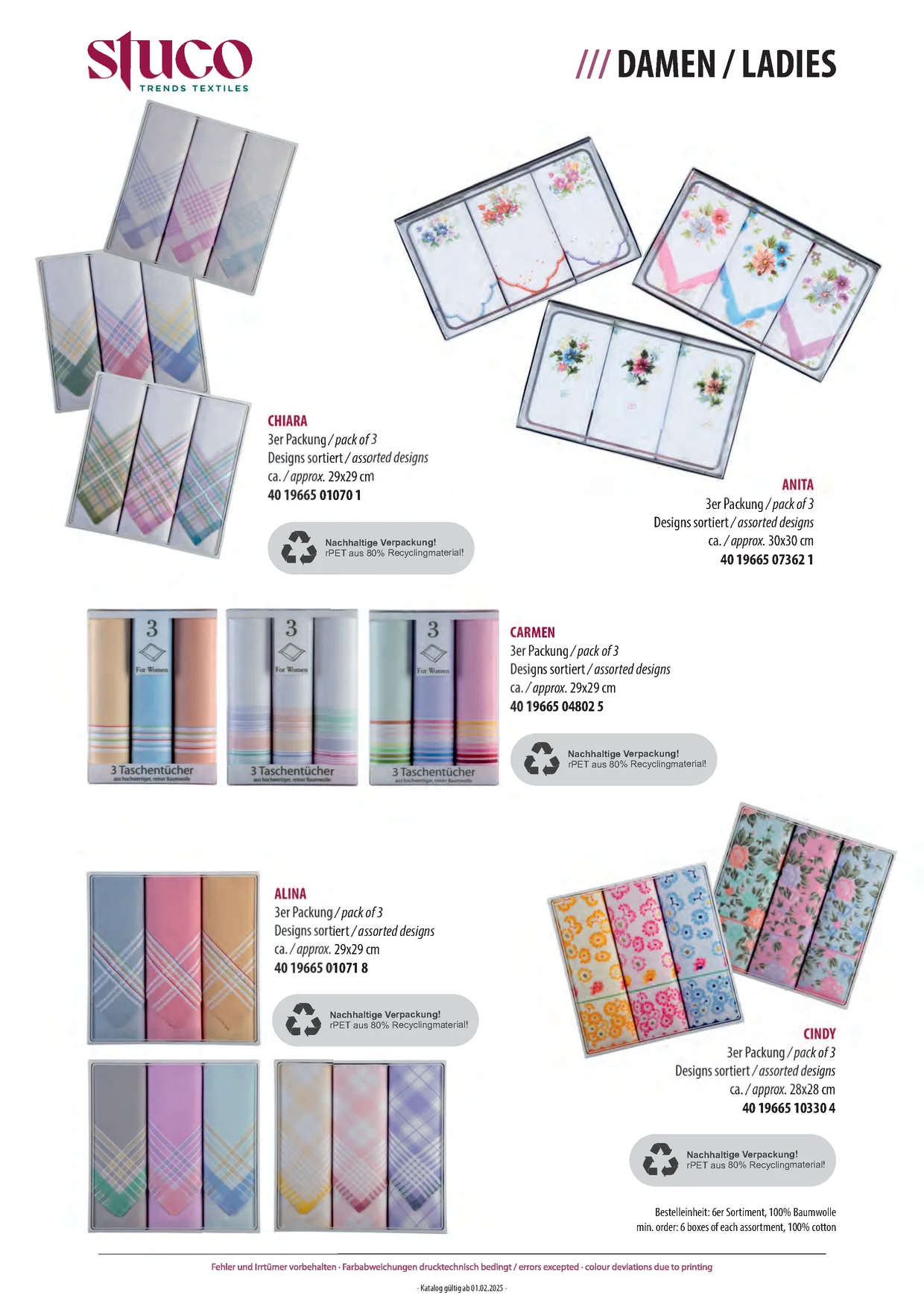 Bestelleinheit: 6er Sortiment, 100% Baumwolle