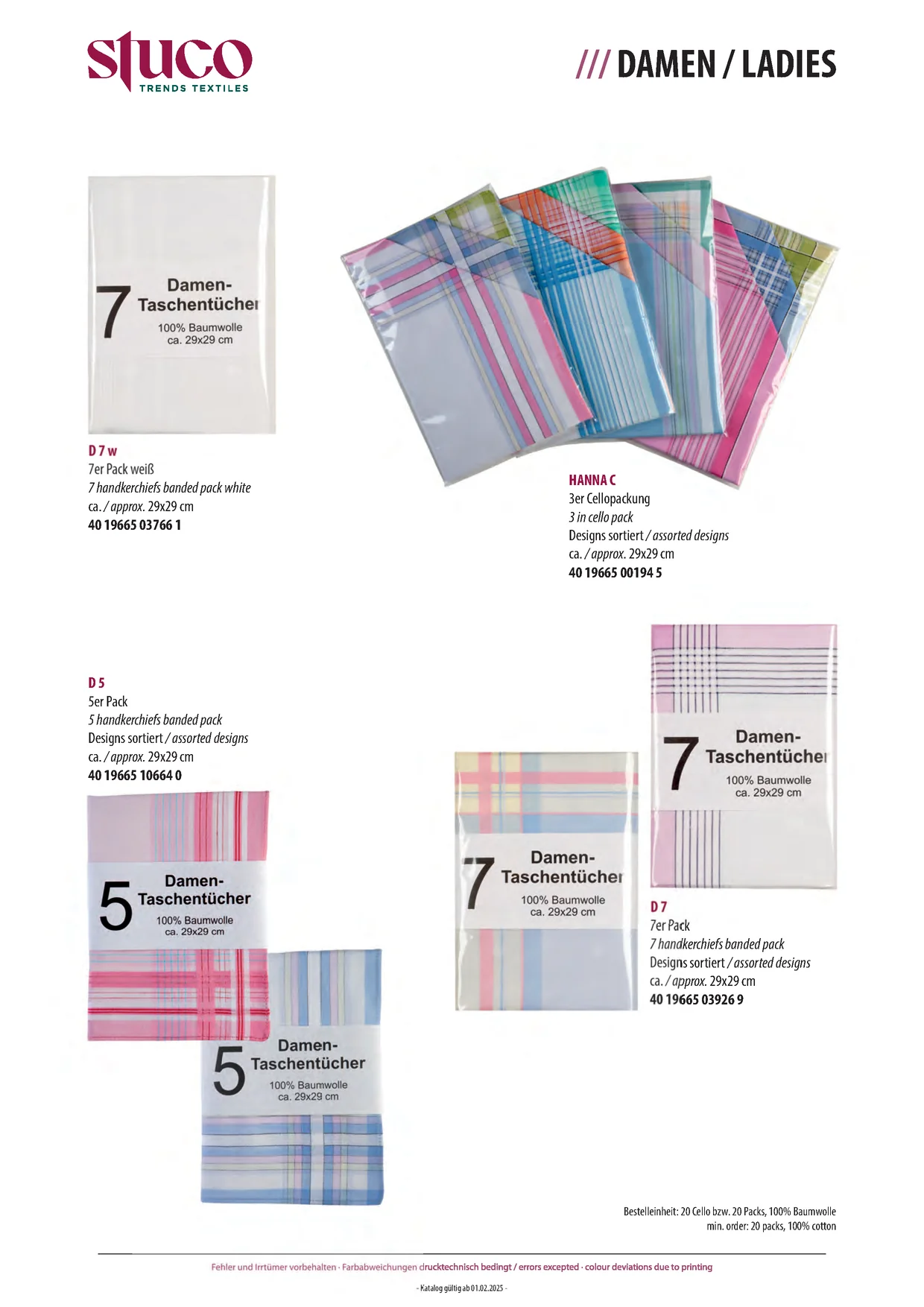 Bestelleinheit: 20 Cello bzw. 20 Packs, 100% Baumwolle