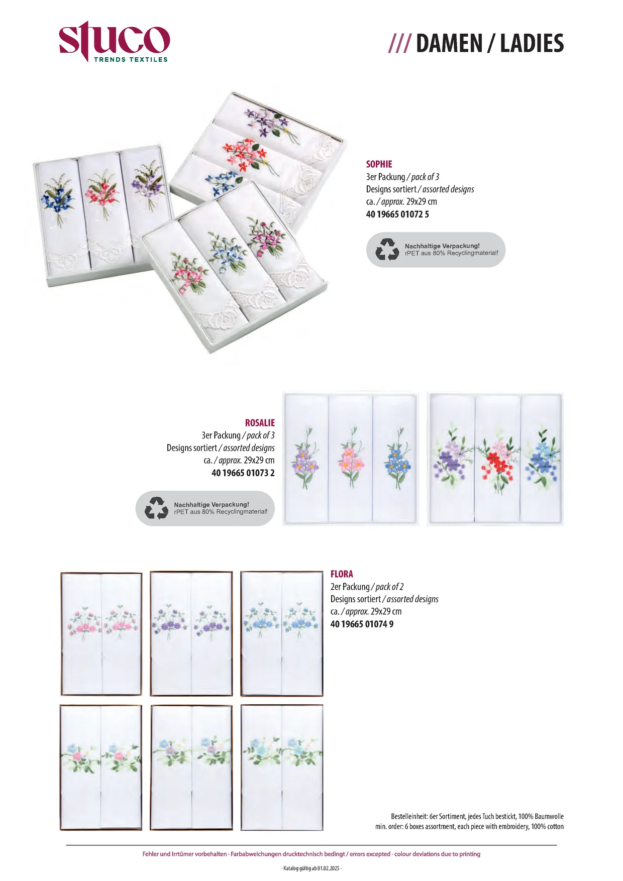 min. order: 6 boxes assortment, each piece with embroidery, 100% cotton