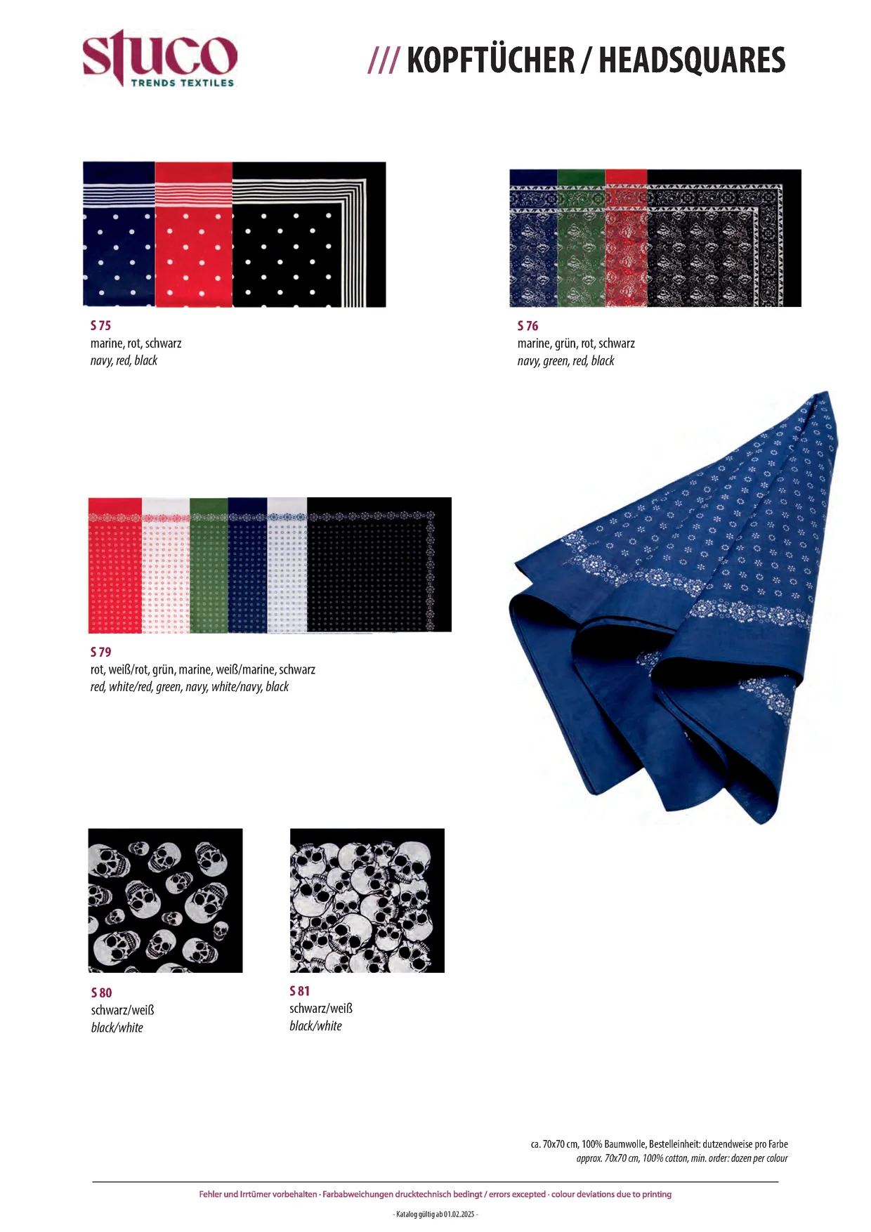 approx. 70x70 cm, 100% cotton, min. order: dozen per colour
